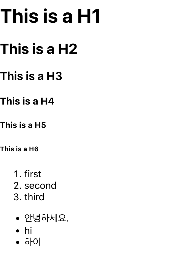 출력 결과는 아래와 같습니다. 입력된 마크다운 텍스트가 원하는 서식대로 출력된 것을 확인할 수 있습니다.